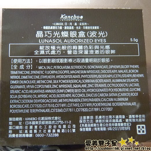 我個人覺得,LUNASOL的眼盒,實品都好美,但是照起來,都無法將它的閃耀度照出來?
