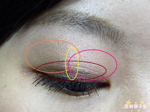 而淺黃色則刷在下眼瞼處。