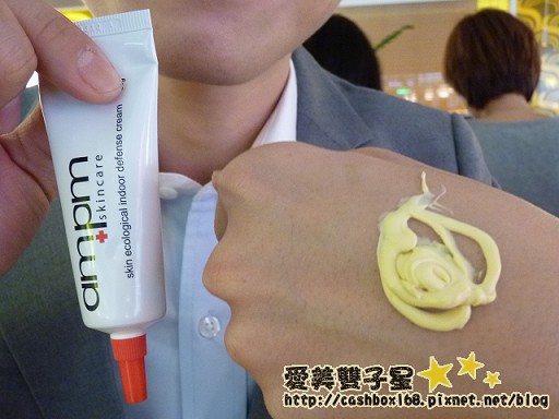 是灰膚色的色調,ampm的BB霜,是帶點蜜桃色的色調,幾乎是所有的膚色都能貼合的顏色: