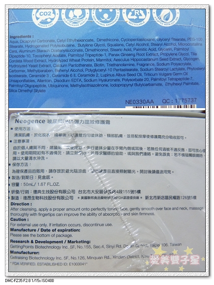 這瓶則是加了許多緊緻成份的修護霜,是我的最愛之一,各位也知道,保濕不外乎就玻尿酸,