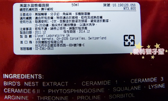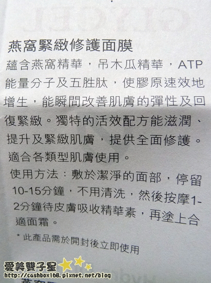 以燕窩精華為主要成份,雖然我自己還不能夠確定燕窩本身的效果(我知道吃的很有效啦,但擦的就不確定)