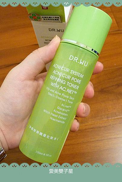 這瓶化妝水的全名為DR.WU 淨痘粉刺調理化妝水