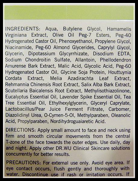 不過最重要的當然是DR.WU獨家的抗痘及粉刺代謝的成份,相信對於痘痘肌會有不錯的幫助。