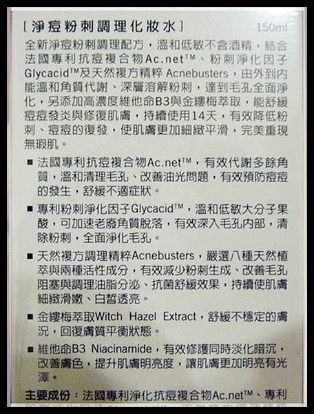 這瓶化妝水加了維他命B3及金縷梅萃取等成份,這些都是對於舒緩痘痘有很不錯的效果,