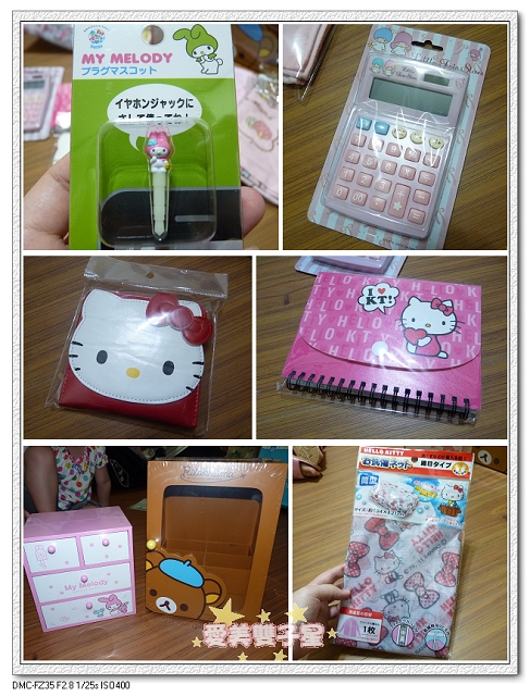 上圖中間那兩個東西,左邊是皮質的KITTY化妝鏡,右邊是KITTY的記事本,裡面還有附尺哩,