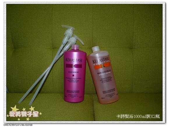 我買了卡詩的絶色髮浴,護色用的,還有那超經典的絲光柔馭髮浴,原本是想買清新舒緩髮浴,但賣 完了...