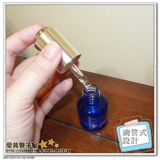 魚子美顏眼露,玻璃瓶的瓶身,搭配按壓式的滴管設計,使用起來很方便,也是我喜愛的方式,
