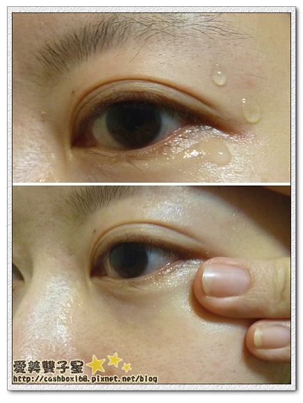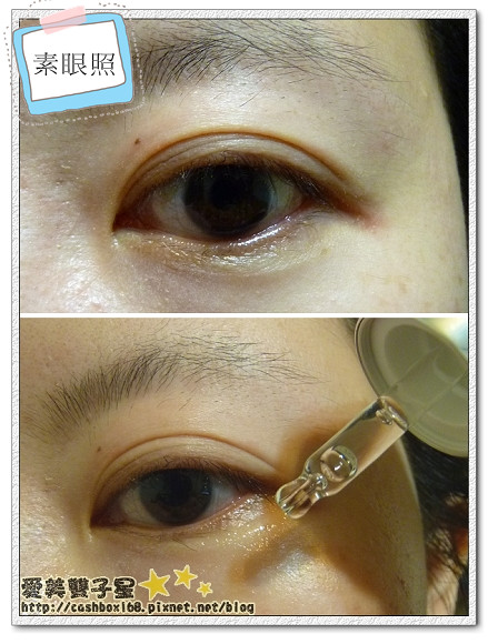 我在早上的保養時,將眼露用少量薄擦於眼皮,待其吸收之後再上眼妝,嗯!真的還蠻持妝的耶~