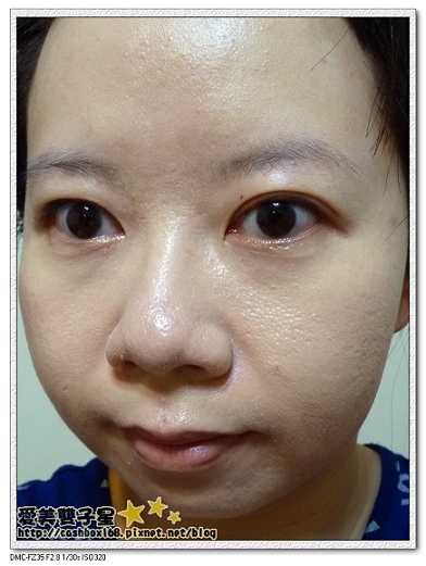 整臉上完粉底液之後,就像上面這張,我還沒有上蜜粉或粉餅,所以看起來是有光澤的,