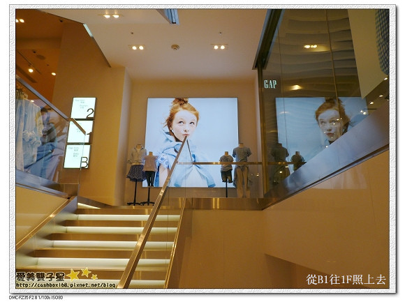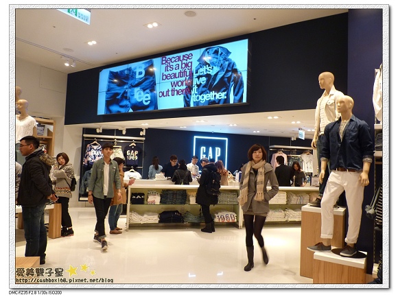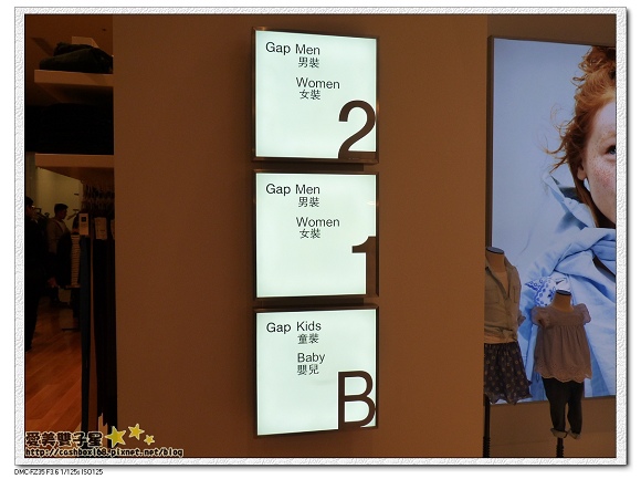 這是還沒進去一樓正門口的上方(二樓外牆處)所拍攝的大看板,好大一個GAP啊!