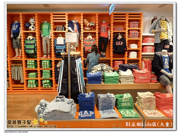 而左方,以及這中間的BABY櫃位後方,則是GAPkids的區域,這樣來看,嬰兒的服飾是比兒童的少,