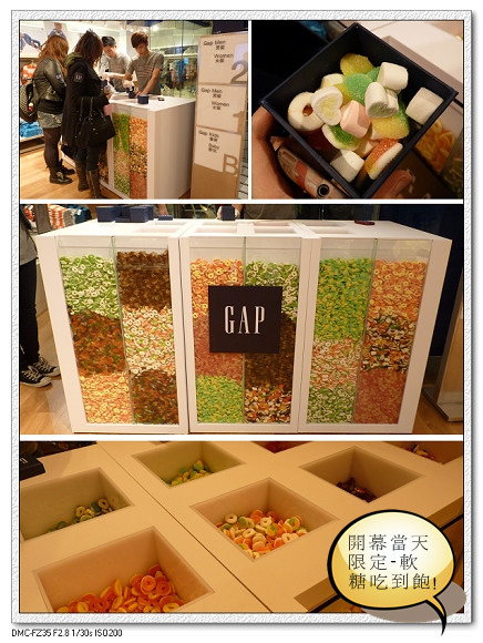 這是開幕當天才有的優惠,哈!!滿滿的軟糖吃到爽,那裡有GAP型男幫你裝軟糖或棉花糖,